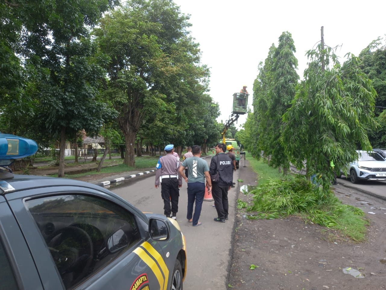 Tim piket Polres Cilegon yang dipimpin oleh Ps Kanit Intel Aipda Yosep.A melakukan monitoring rutin terhadap potensi bahaya pohon tumbang dan banjir di wilayah hukum Polsek Purwakarta, Kota Cilegon