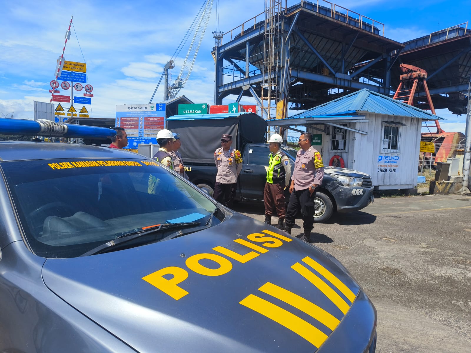 Kapolres Cilegon Polda Banten AKBP Martua Raja Taripar Laut Melalui Kapolsek Kskp Banten Polres Cilegon Polda Banten AKP Fredo Leonard Mengatakan Personil Polsek Kskp Banten Rutin menyambangi anggota Security dan memberikan himbauan agar para anggota Security bisa melaksanakan tugas menjaga keamanan di lingkungan Kawasan Pelabuhan.