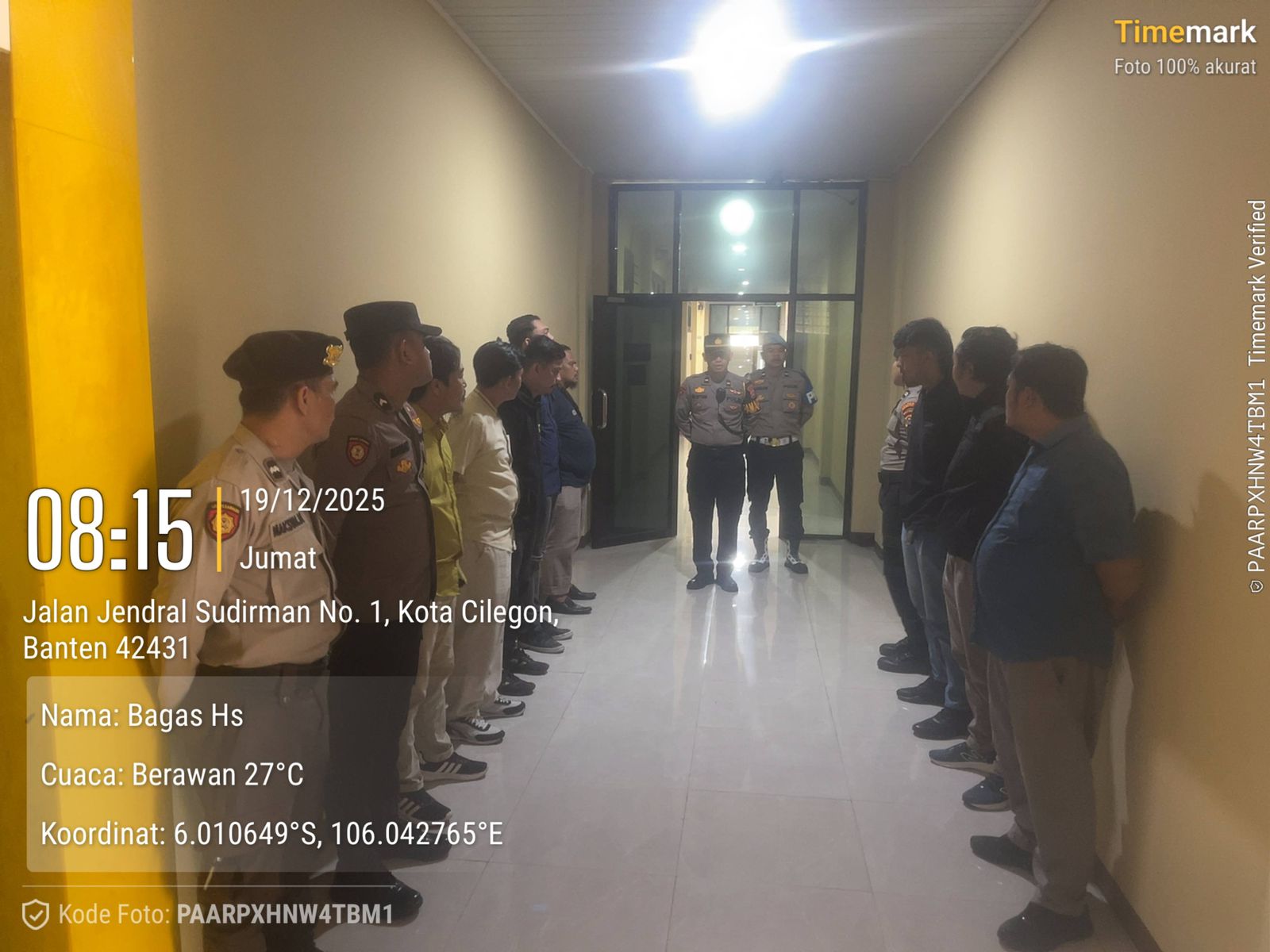 Cilegon, personel Satreskrim Polres Cilegon Polda Banten melaksanakan piket di penjagaan pintu masuk Polres Cilegon Polda Banten untuk memastikan mako Polres Cilegon dalam keadaan aman dan nyaman dalam melayani Masyarakat. Jumat (19 /12/2025).
