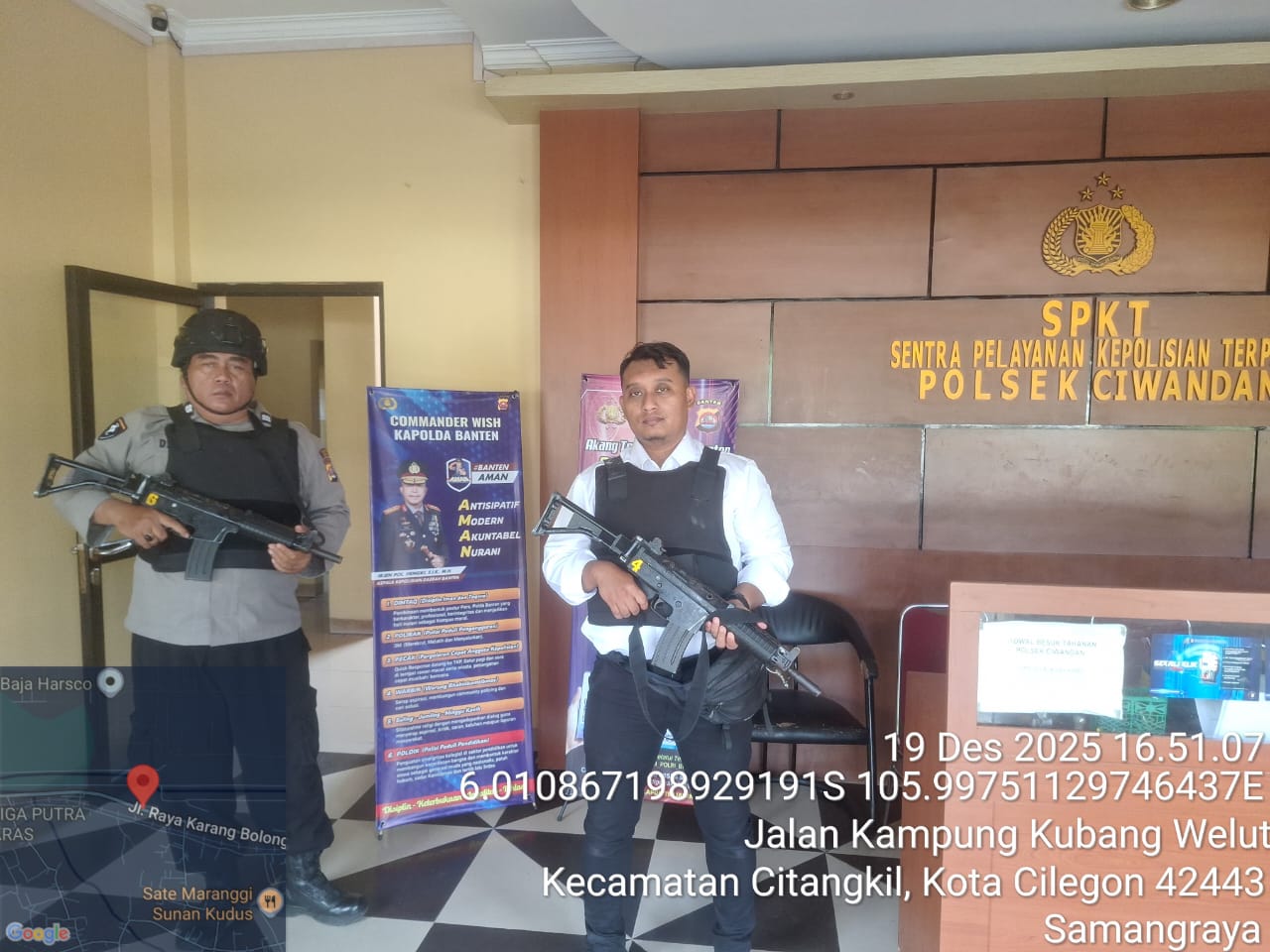 Cilegon - Guna mengantisipasi adanya potensi ancaman dan gangguan terhadap keamanan kantor maupun keselamatan personel piket jaga, Personil Polsek Ciwandan Polres Cilegon Polda Banten selalu tingkatkan kesiapsiagaan dan kewaspadaan dengan rutin menggelar kegiatan Sistem Pengamanan Mako (Sispam Mako), Jum'at (19/12/2025).