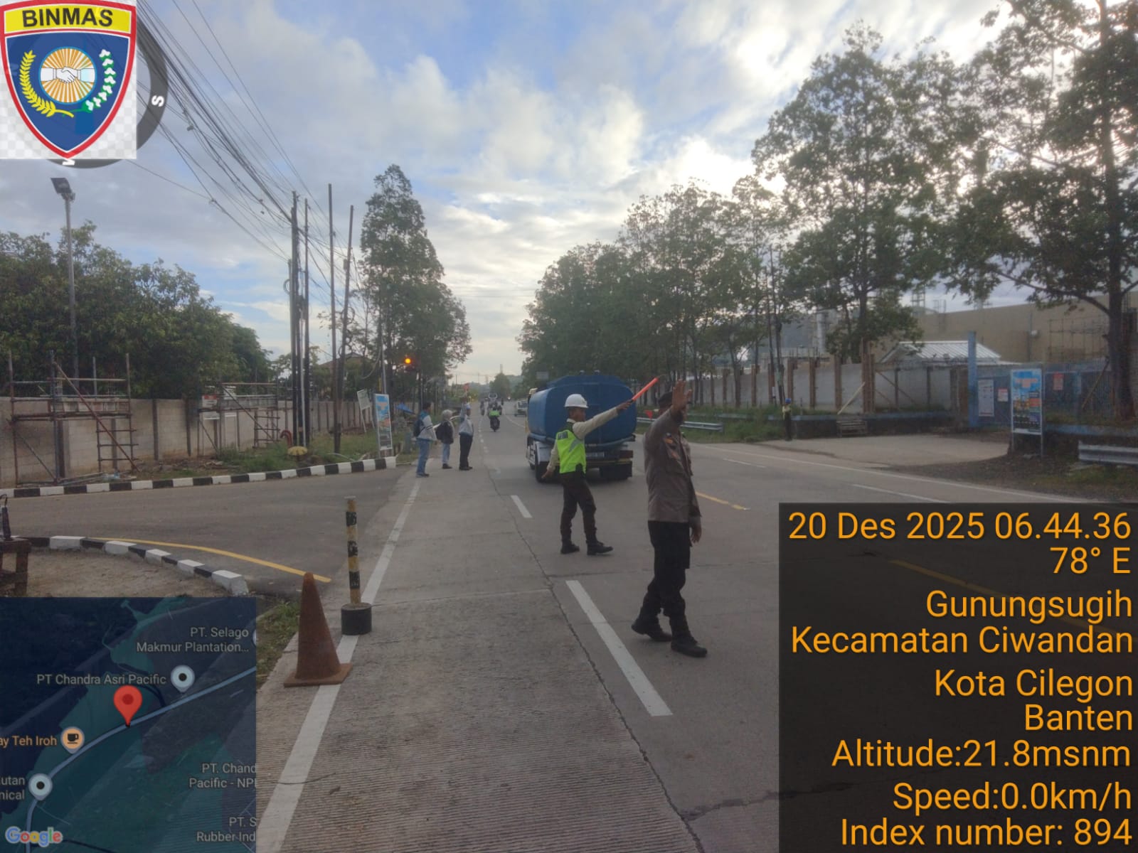 Cilegon - Personil  Polsek Ciwandan Polres Cilegon Polda Banten melaksanakan giat Strong Poin Pengaturan Lalu Lintas Disimpang Brown Kelurahan Gunung Sugih guna menciptakan ketertiban, keamanan dan Kelancaran Lalu-lintas bagi masyarakat, Minggu (21/12/2025).