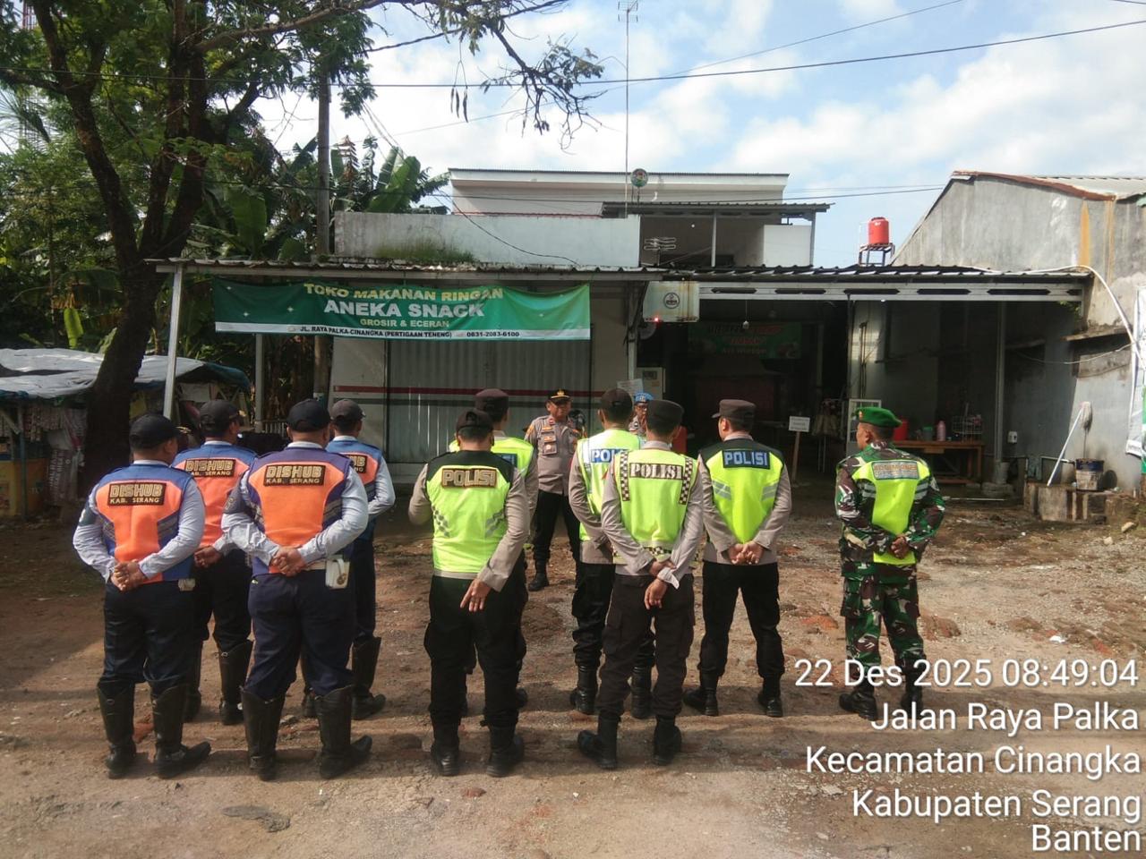 *POLRES CILEGON* Polda Banten. Menjaga kegiatan dan memastikan Aman Polsek Cinangka Polres Cilegon terjunkan Petugas menjaga pengamanan kegiatan PAM Natal dan tahun baru di Pospam Cinangka Kecamatan Cinangka. Senin (22/12/2025).