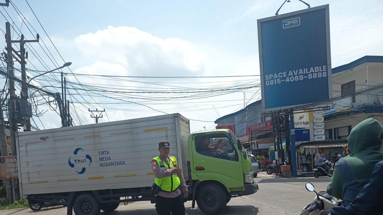 Polsek Anyar Lakukan Pengaturan Lalu Lintas Jalur Anyar - Cinangka