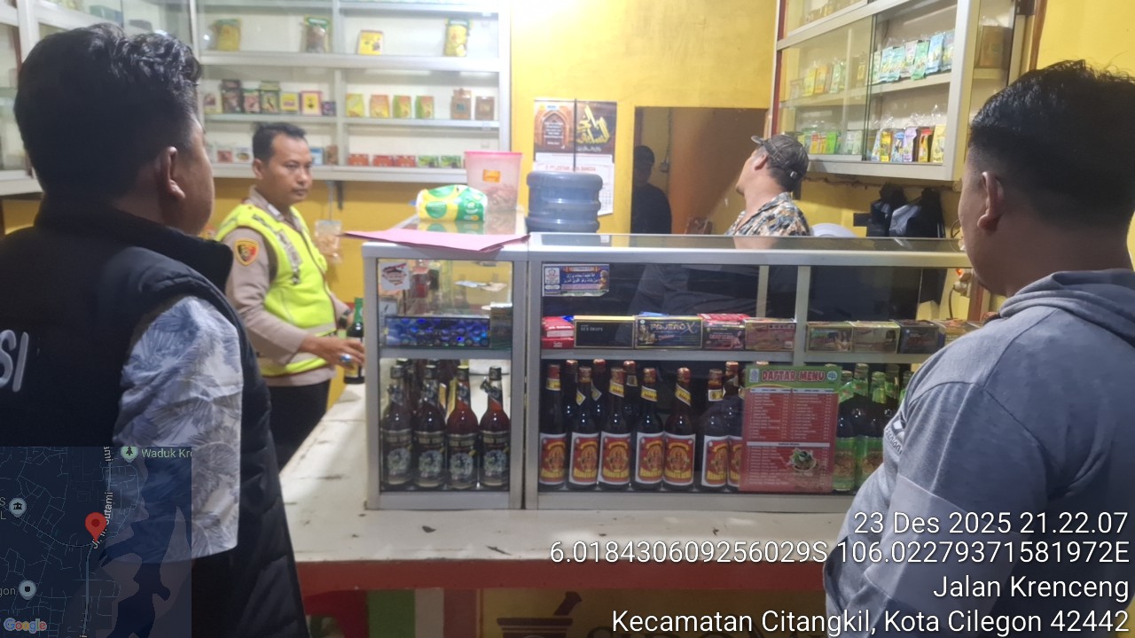 Kapolres Cilegon Polda Banten AKBP Dr. Martua Raja Taripar Laut Silitonga melalui Kapolsek Ciwandan Polres Cilegon Polda Banten KOMPOL Andi Suherman Mengatakan Pada hari Selasa tanggal 23 Desember 2025 pukul 21.30 wib Telah dilaksanakan kegiatan operasi Penyakit masyarakat (pekat) dengan sasaran minuman keras (miras) di daerah hukum Polsek Ciwandan.