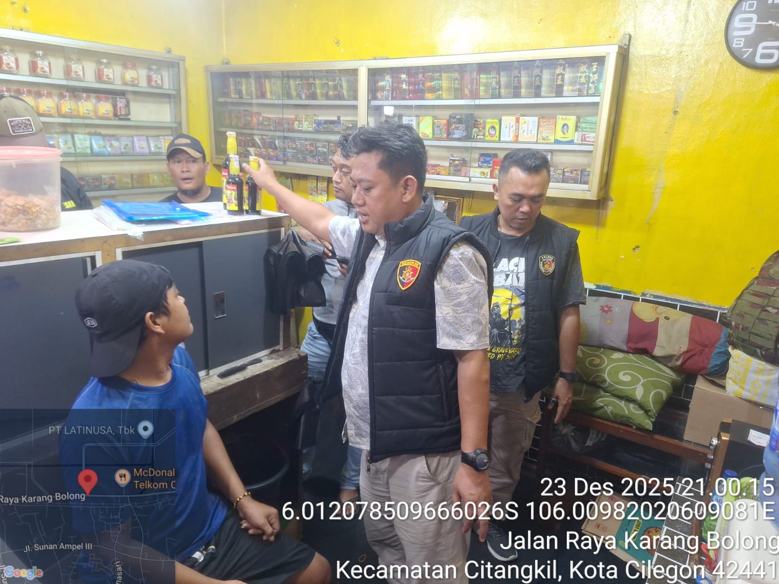 Kapolres Cilegon Polda Banten AKBP Dr. Martua Raja Taripar Laut Silitonga melalui Kapolsek Ciwandan Polres Cilegon Polda Banten KOMPOL Andi Suherman Mengatakan Pada hari Selasa tanggal 23 Desember  2025 pukul 21.30 wib Telah dilaksanakan kegiatan operasi Penyakit masyarakat (pekat) dengan sasaran minuman keras (miras) di daerah hukum Polsek Ciwandan.