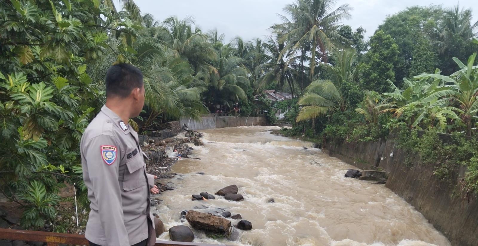 Melakukan Patroli Personel Polsek Anyar Pantau Debit Air Sungai Wilayah Pasca Hujan