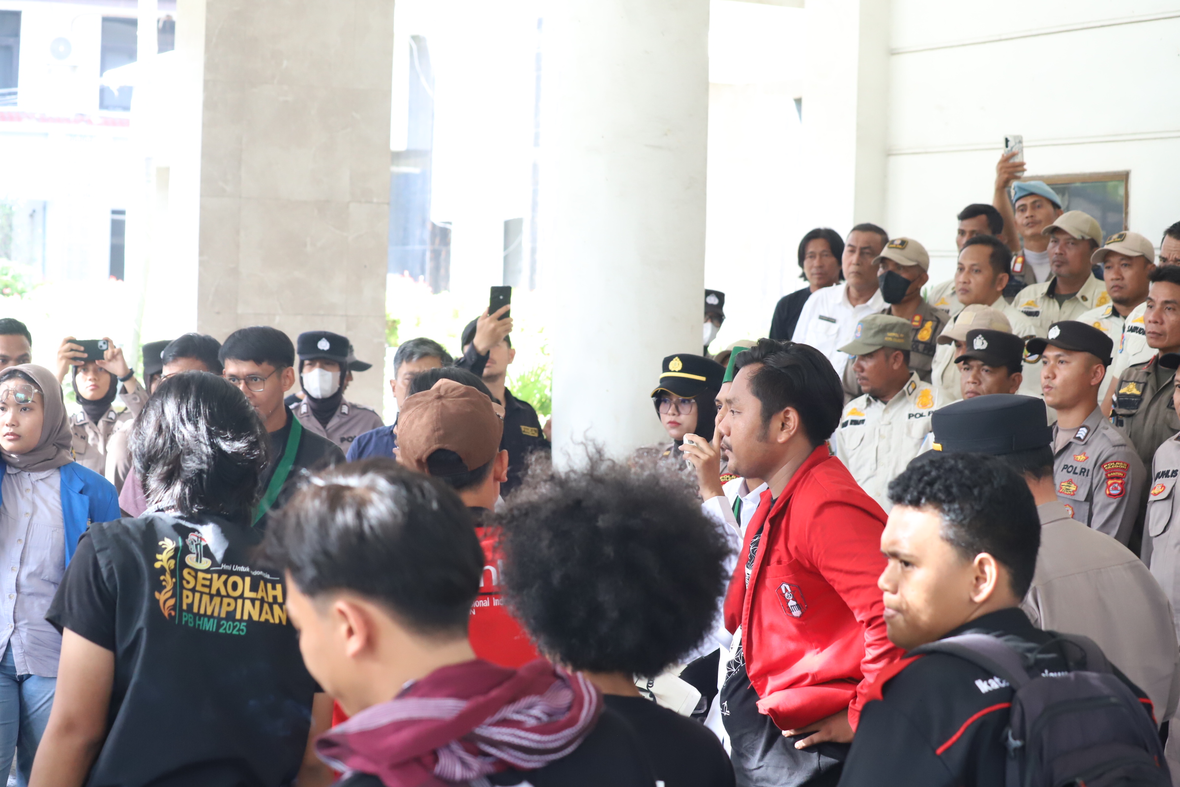 Sekitar pukul 14.35 WIB, massa aksi sempat membakar ban dan karton spanduk sebagai bentuk kekecewaan terhadap kinerja pemerintah daerah. Situasi kemudian kembali kondusif, dengan massa melanjutkan orasi secara tertib hingga sore hari.