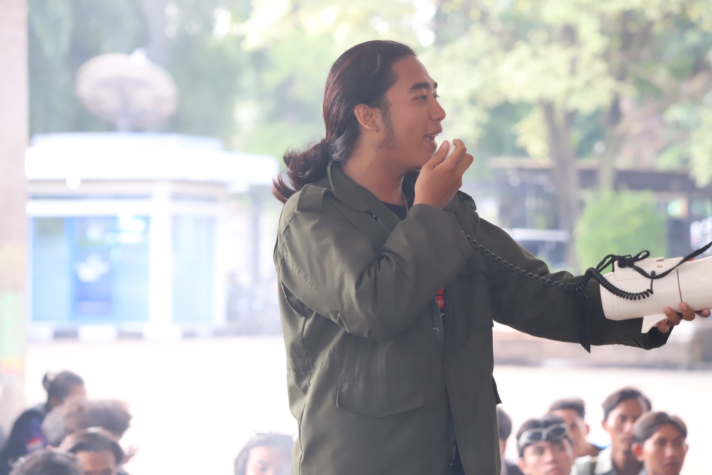 Massa aksi yang terdiri dari gabungan sejumlah organisasi mahasiswa, di antaranya Ikatan Mahasiswa Cilegon (IMC), Pergerakan Mahasiswa Islam Indonesia (PMII), Himpunan Mahasiswa Islam (HMI), serta Gerakan Mahasiswa Nasional Indonesia (GMNI), mulai berkumpul di Masjid Al-Hadid, Kelurahan Ramanuju, Kecamatan Purwakarta, sekitar pukul 13.50 WIB.