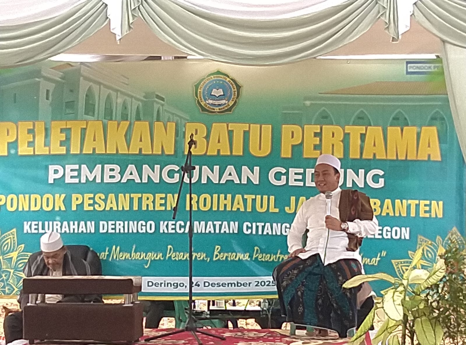Cilegon - Wakapolsek Ciwandan AKP Uup M Ma'ruf dan personil Polsek Ciwandan hadiri peletakan batu pertama pembangunan Ponpes Roihatul Jannah Banten di Link. Warnasari 2, Kel. Dringo, Citangkil. Kegiatan dihadiri Pemerintah Daerah, TNI Polri, Tokoh Agama, dan Masyarakat,Rabu (24/12/2025).
