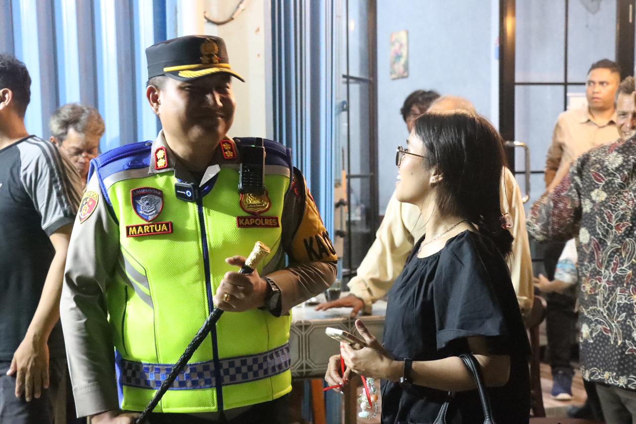 Forkopimda turut menyampaikan ucapan selamat Natal kepada jemaat serta membagikan bunga dan bingkisan sebagai bentuk perhatian dan simbol damai Natal. Respons hangat dan penuh sukacita terlihat dari para jemaat yang menyambut langsung pemberian tersebut.