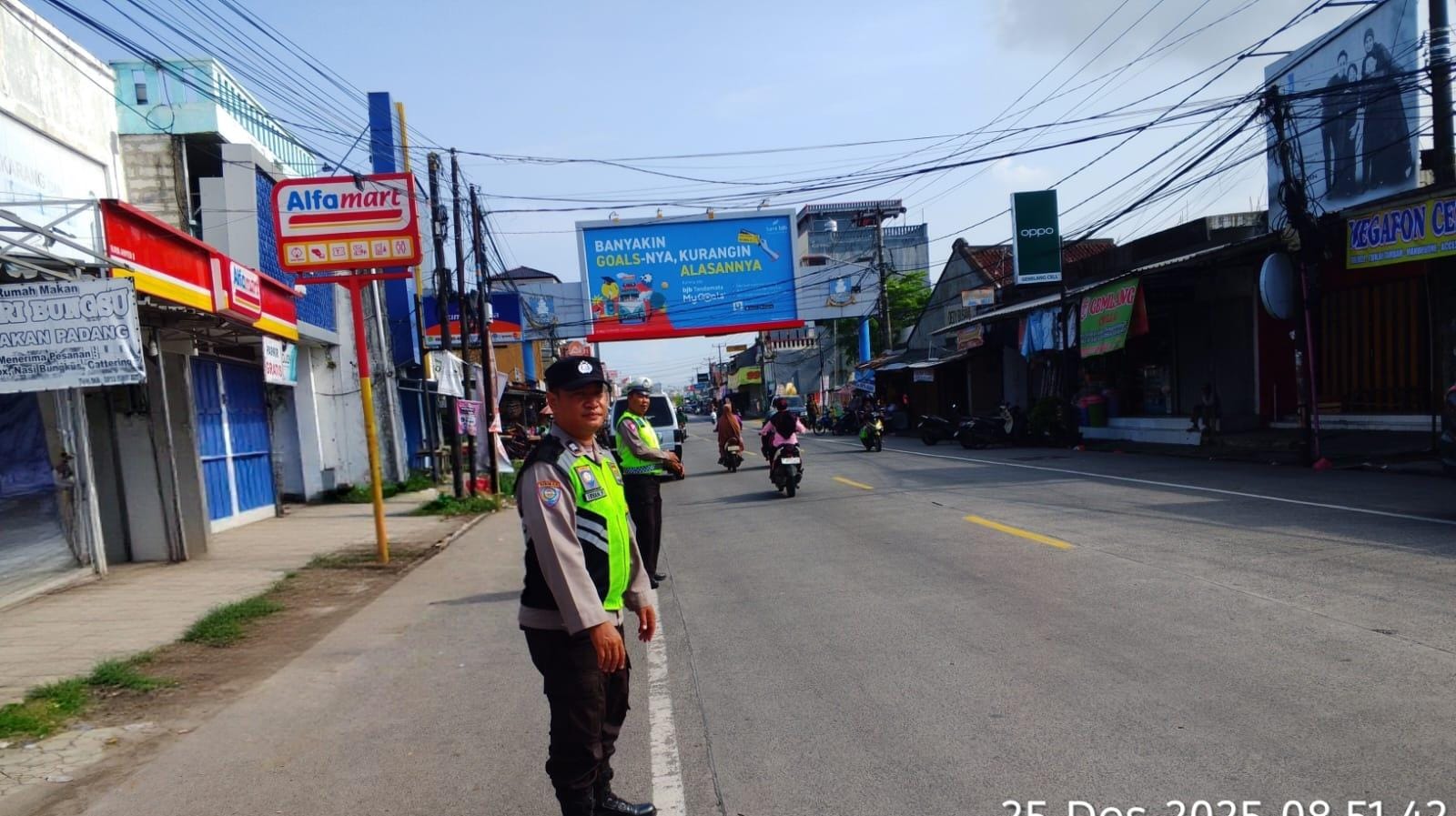 Polsek Anyar Dalam Pengaturan Lalu Lintas di Jalur Anyar - Cinangka