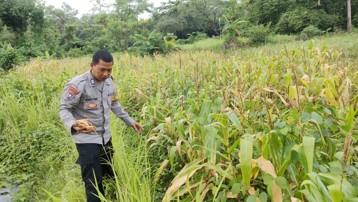 Personil Bhabinkamtibmas Polsek Purwakarta Cek Tanaman Jagung,Pastikan Pertumbuhan Aman dari hama di Kelurahan Kotabumi