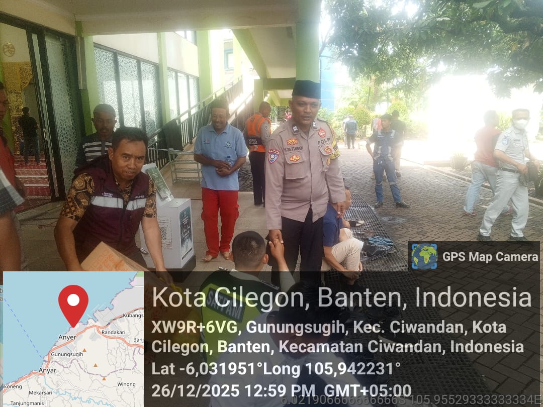 Cilegon - Bhabinkamtibmas Polsek Ciwandan Polres Cilegon Polda Banten Selesai melaksanakan Sholat secara berjama’ah dan Sampaikan Himbauan-himbauan Kamtibmas Kepada Masyarakat Jama'ah Yang ada Dimasjid, Jum'at (26/12/2025).