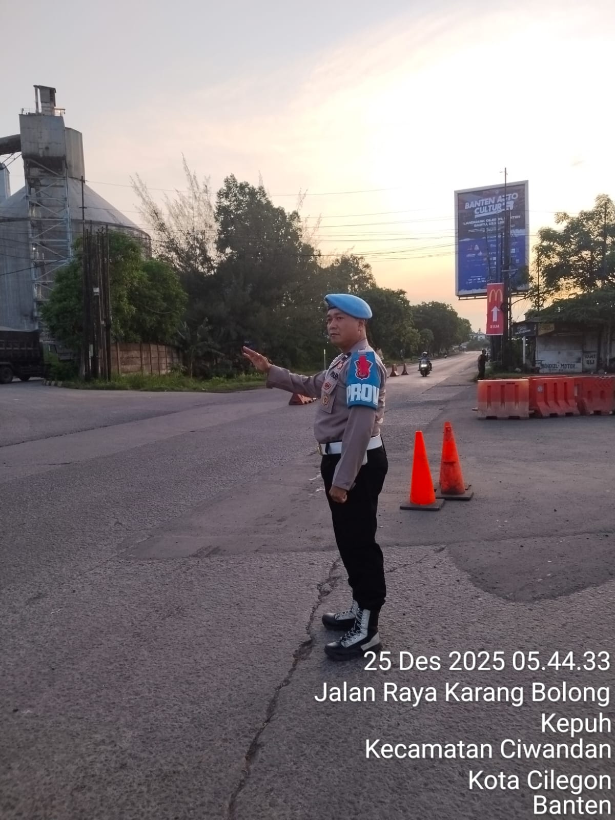 Kapolres Cilegon Polda Banten AKBP Dr. Martua Raja Taripar Laut Silitonga yang di wakili Kapolsek Ciwandan Polres Cilegon Polda Banten Kompol Andi Suherman mengatakan, "Guna terciptanya kelancaran arus Libur Natal Dan tahun Baru 2025-2026, Pospam 5 Ciwandan merekayasa arus lalu lintas yang akan menuju Pelabuhan Pelindo Banten.