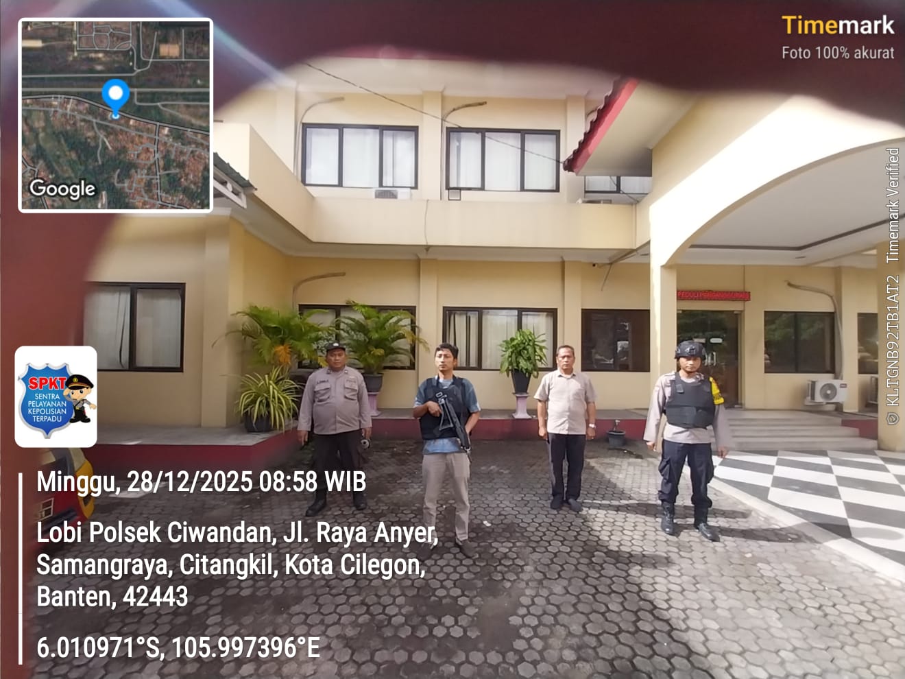 Cilegon - Guna mengantisipasi adanya potensi ancaman dan gangguan terhadap keamanan kantor maupun keselamatan personel piket jaga, Personil Polsek Ciwandan Polres Cilegon Polda Banten selalu tingkatkan kesiapsiagaan dan kewaspadaan dengan rutin menggelar kegiatan Sistem Pengamanan Mako (Sispam Mako), Sabtu (27/12/2025).