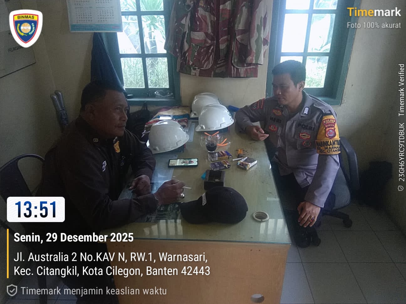 Cilegon - Bhabinkamtibmas Polsek Ciwandan Polres Cilegon Polda Banten Bangun Kemitraan Kamtibmas Dan Datangi Petugas security Meminta Agar Dapat Membantu Tugas-tugas Polri Dalam Menjaga Harkamtibmas, Senin (29/12/2025).