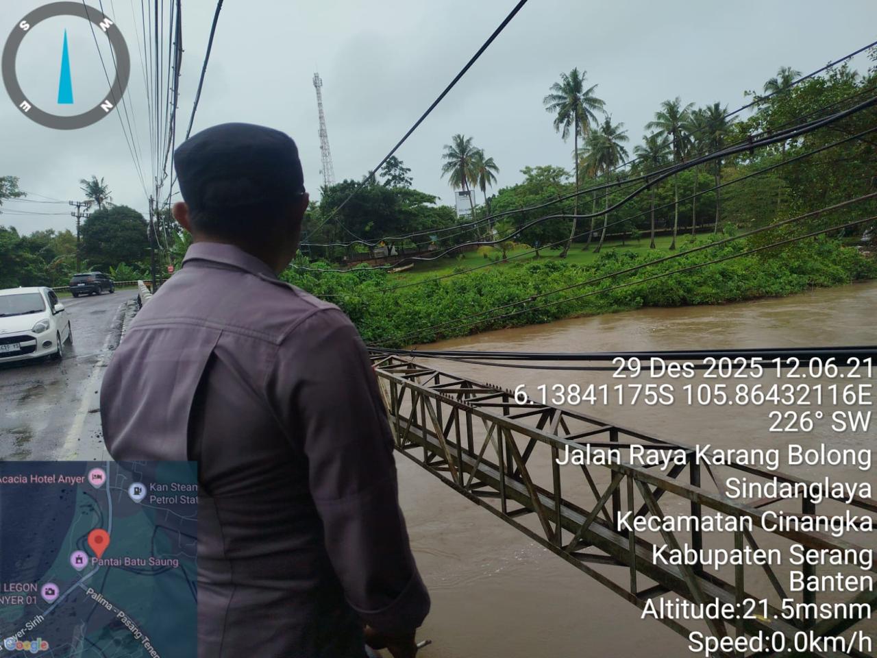 Piket Polsek Cinangka secara rutin melakukan pengecekan kondisi sungai dan berkoordinasi dengan pihak terkait untuk memantau perkembangan debit air. Pemantauan ini juga melibatkan partisipasi aktif dari masyarakat setempat.