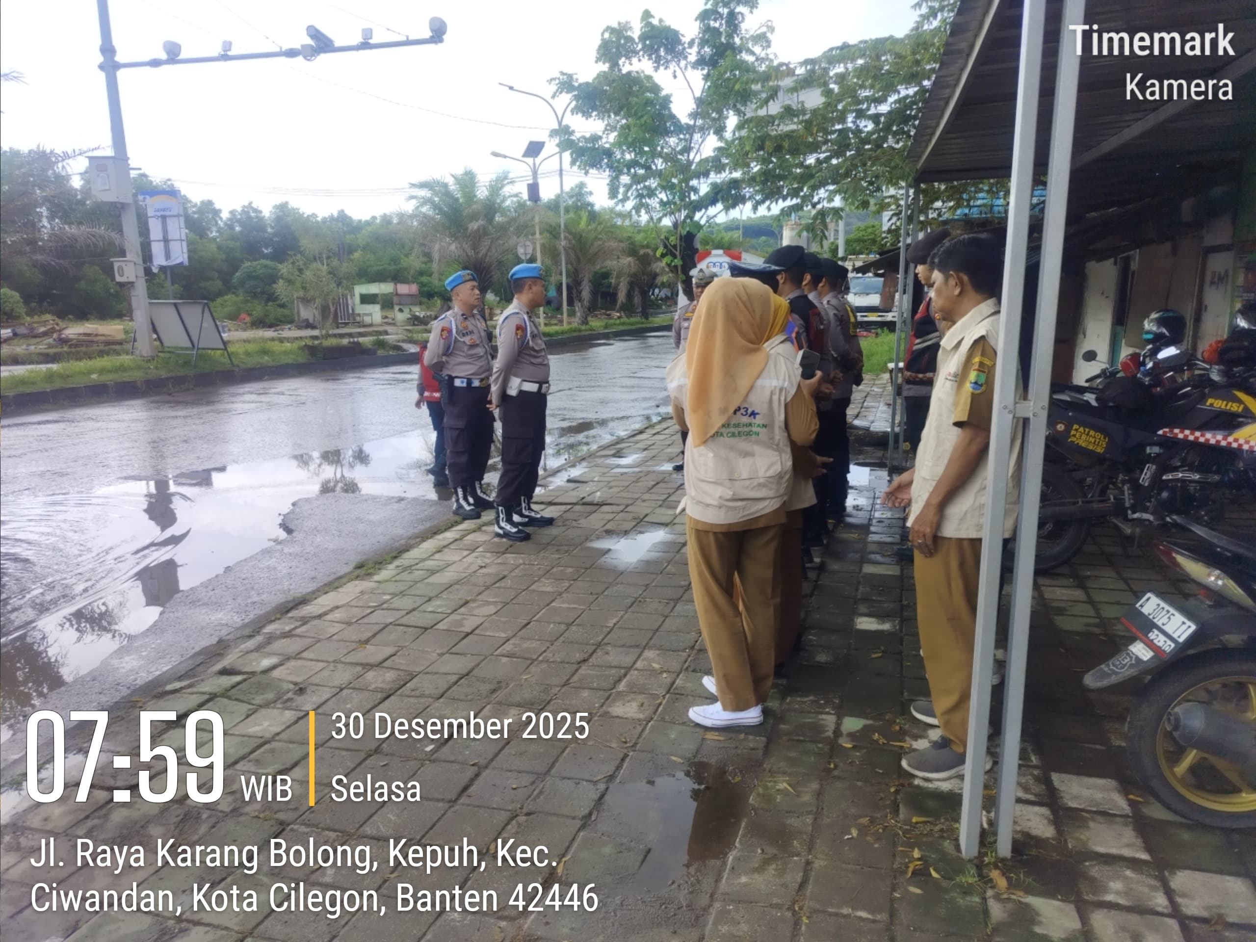 Cilegon - Personil Pospam 5 Ciwandan Polsek Ciwandan Polres Cilegon Polda Banten melaksanakan Apel Kesiapan Pelaksanaan kegiatan pengamanan Arus Lalu-lintas Wisata Dalan Operasi Lilin Maung 2025, Selasa (30/12/2025).