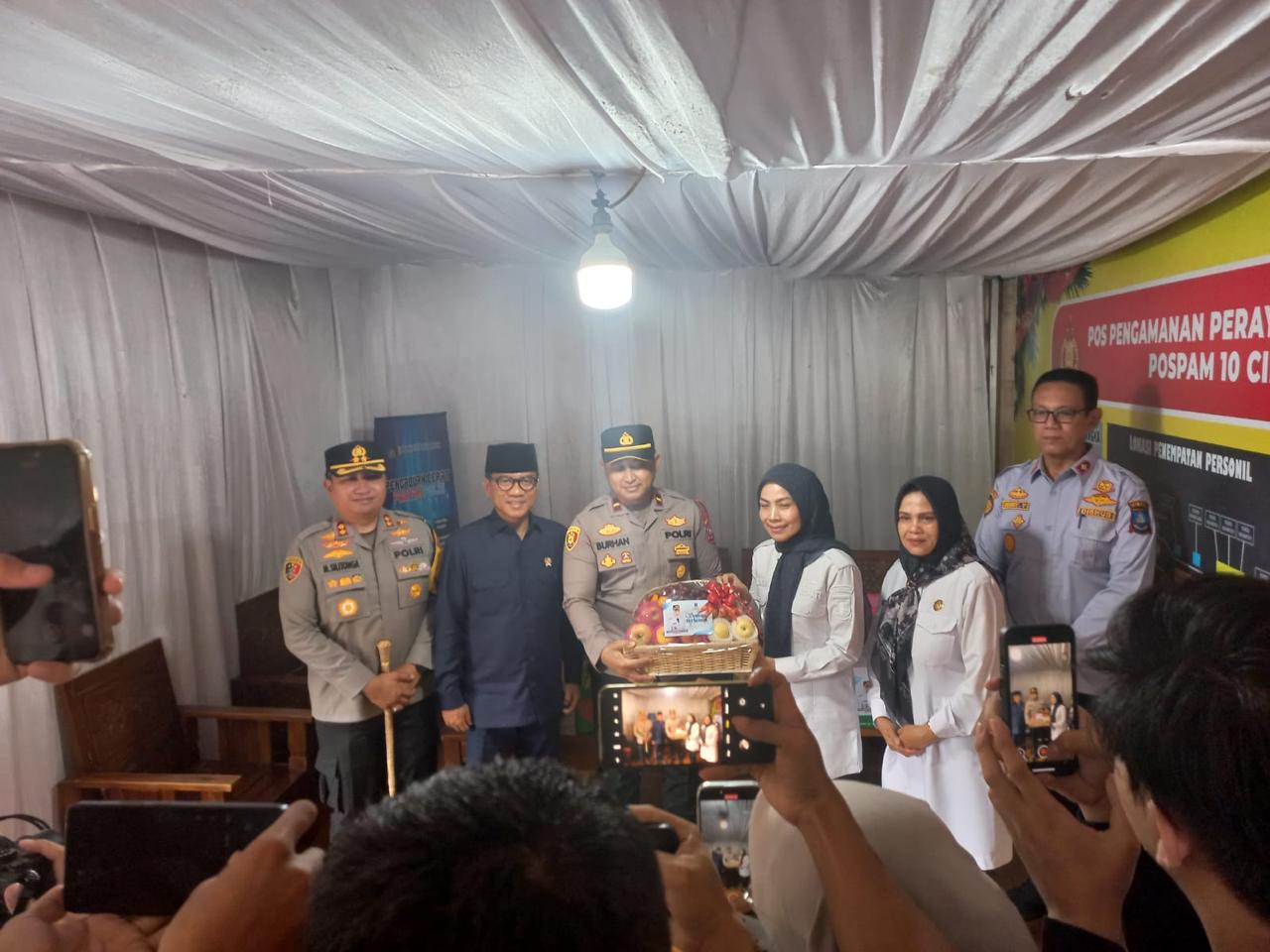 POLRES CILEGON – Kapolres Cilegon AKBP Martua Raja Laut Silitonga mendampingi Menteri Desa, Pembangunan Daerah Tertinggal, dan Transmigrasi H. Yandri Susanto serta Bupati Kabupaten Serang Hj. Ratu Rachmatu Zakiyah dalam kegiatan pengecekan Pos Pengamanan (Pospam) 10 Cinangka, Kabupaten Serang, Rabu (31/12/2025), dalam rangka pengamanan perayaan Tahun Baru.