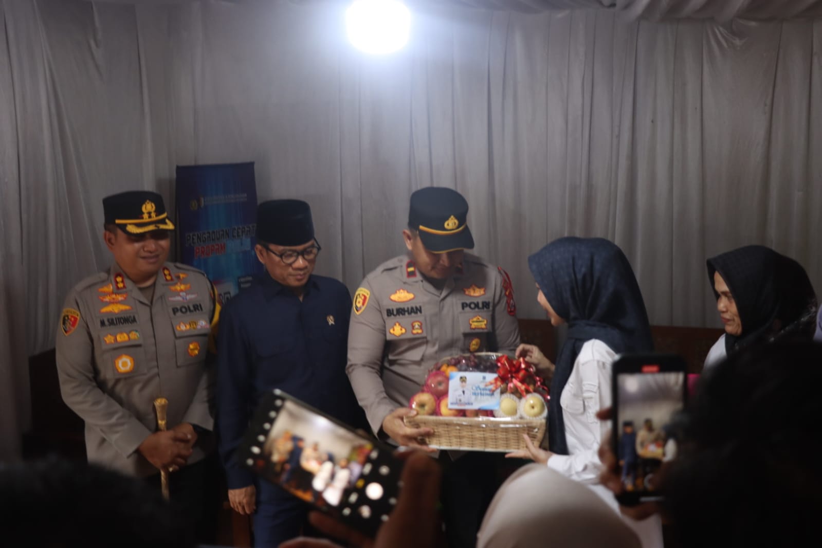 Pada kesempatan tersebut, Menteri menyerahkan bingkisan secara simbolis kepada Kapolres Cilegon sebagai bentuk dukungan moral untuk personel yang bertugas di lapangan. Kehadiran pejabat pusat ini menjadi motivasi bagi petugas gabungan yang berjaga selama Operasi Lilin Maung 2025.