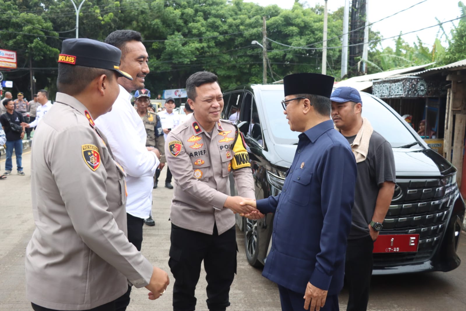 Menteri Desa RI tiba di lokasi sekitar pukul 13.45 WIB didampingi Bupati Serang Hj. Ratu Rachmatu Zakiyah. Kedatangan keduanya disambut jajaran Forkopimda dan pejabat utama Polres Cilegon, di antaranya Dandim 0623 Cilegon Letkol Inf Imam Buchori, Wakapolres Kompol Arief Nazaruddin Yusuf, para Kasat, Kapolsek jajaran, serta Camat Cinangka dan para kepala desa wilayah Anyer–Cinangka.