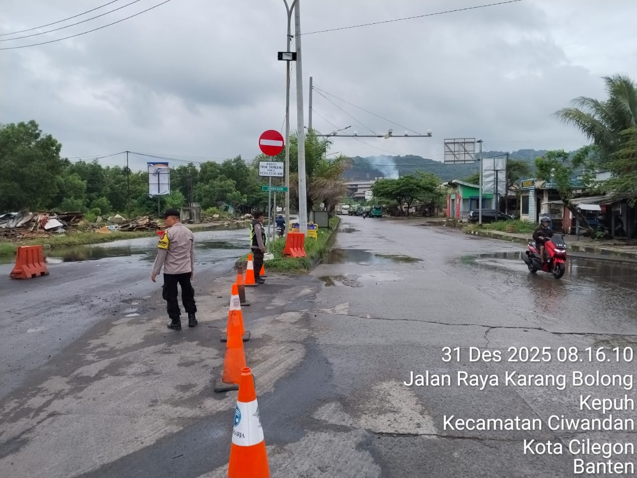 Kapolres Cilegon Polda Banten AKBP Dr. Martua Raja Taripar Laut Silitonga yang di wakili Kapolsek Ciwandan Polres Cilegon Polda Banten Kompol Andi Suherman mengatakan, "Guna terciptanya kelancaran arus Libur Natal Dan tahun Baru 2025-2026, Pospam 5 Ciwandan merekayasa arus lalu lintas yang akan menuju Pelabuhan Pelindo Banten.