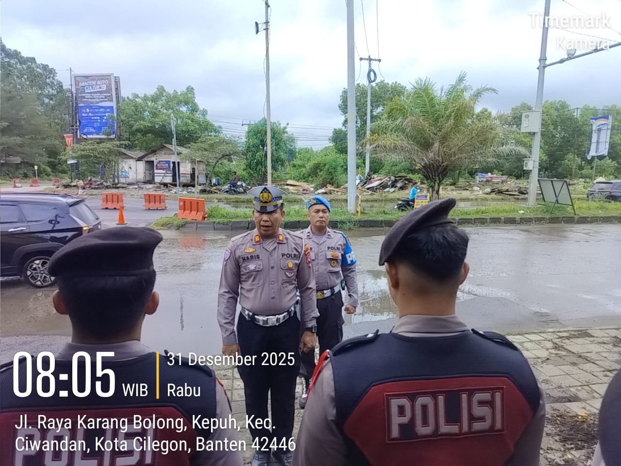 Cilegon - Personil Pospam 5 Ciwandan Polsek Ciwandan Polres Cilegon Polda Banten melaksanakan Apel Kesiapan Pelaksanaan kegiatan pengamanan Arus Lalu-lintas Wisata Dalan Operasi Lilin Maung 2025, Rabu (31/12/2025)