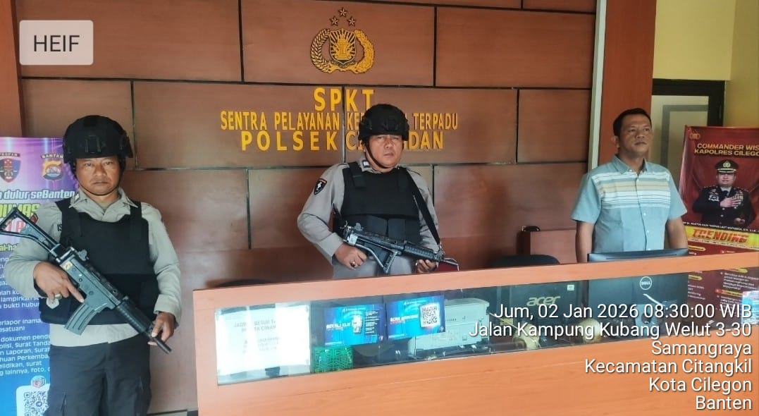 Cilegon - Guna mengantisipasi adanya potensi ancaman dan gangguan terhadap keamanan kantor maupun keselamatan personel piket jaga, Personil Polsek Ciwandan Polres Cilegon Polda Banten selalu tingkatkan kesiapsiagaan dan kewaspadaan dengan rutin menggelar kegiatan Sistem Pengamanan Mako (Sispam Mako), Kamis (01/01/2026).