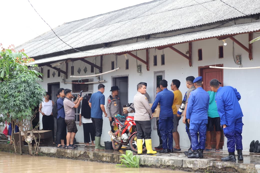 Usai meninjau dapur umum, Kapolda Banten melanjutkan pengecekan ke lokasi banjir di Lingkungan Sambirata RT 005/003, Kelurahan Cibeber, Kecamatan Cibeber. Di lokasi tersebut, Kapolda melihat langsung kondisi pemukiman warga yang terdampak banjir sekaligus menyerahkan bantuan makanan kepada masyarakat sebagai bentuk empati dan dukungan moril.