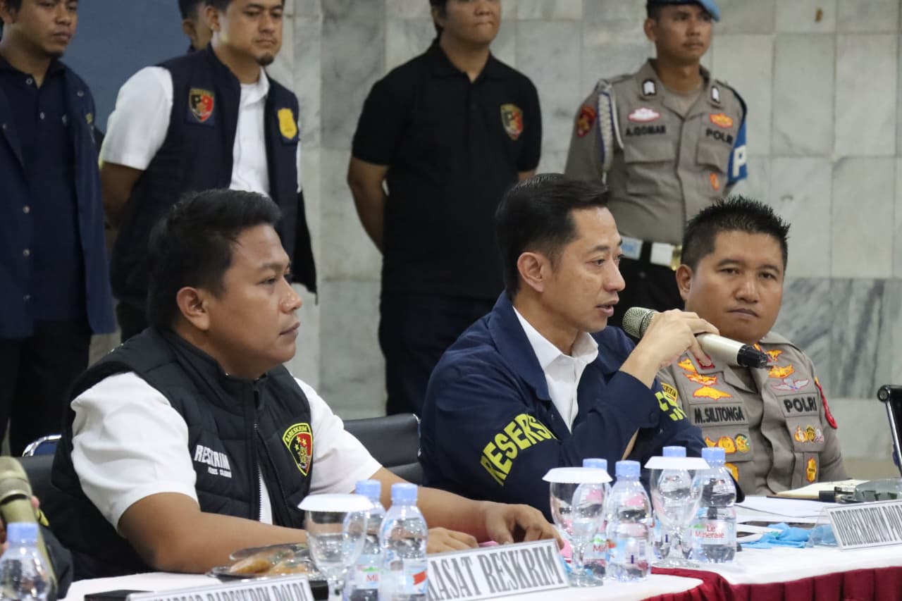 Press conference tersebut disampaikan oleh Ditreskrimum Polda Banten Kombes Pol Dian Setyawan didampingi Kapolres Cilegon AKBP Dr. Martua Raja Taripar Laut Silitonga, Plh. Kabid Humas Polda Banten AKBP Meryadi, Wakapolres Cilegon Kompol Arief Nazarudin, Kasubdit Jatanran Ditreskrimum Polda Banten Kompol Yeremia Iwo, Kasat Reskrim Polres Cilegon AKP Yoga Tama, Ka Instalasi Forensik Modikolegal RSUD Cilegon Dr. Baeti Adhayati SP FM, Puslabfor Polri Kompol Irfan Rofik.