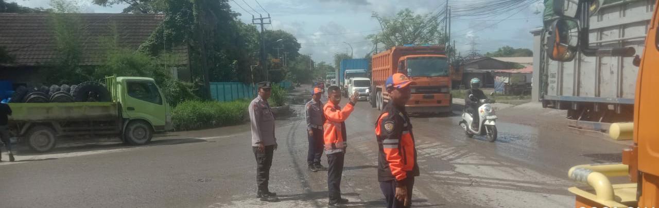 Laksanakan Strong Poin Di Sore Hari Di Jalan Raya PT SMI Bojonegara, Bripka Leo & Dishub Demi Kelancaran dan Kenyamanan Pengguna Jalan