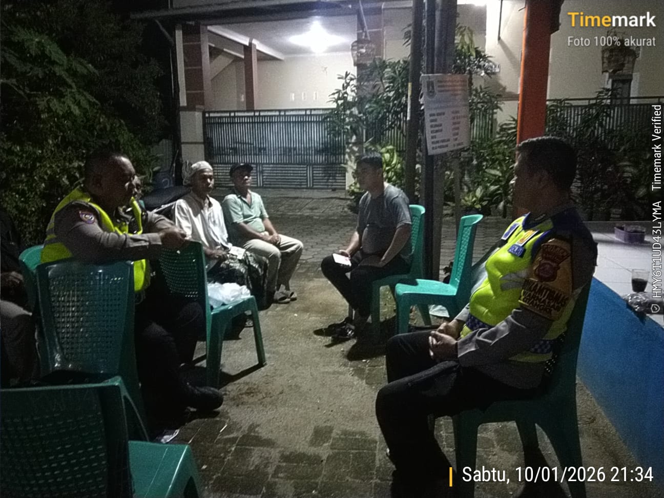 Cilegon - Kasat Binmas Polsek Ciwandan Polres Cilegon Polda Banten IPTU Muhyidin bersama Personil Bhabinkamtibmas Polsek Ciwandan Polres Cilegon Polda Banten BRIPKA Heri Siswantoko melakukan kontrol Pos Ronda dan Berikan himbauan kepada pihak terkait dan warga, agar kegiatan Siskamling ditingkatkan lagi, Minggu (11/01/2026).