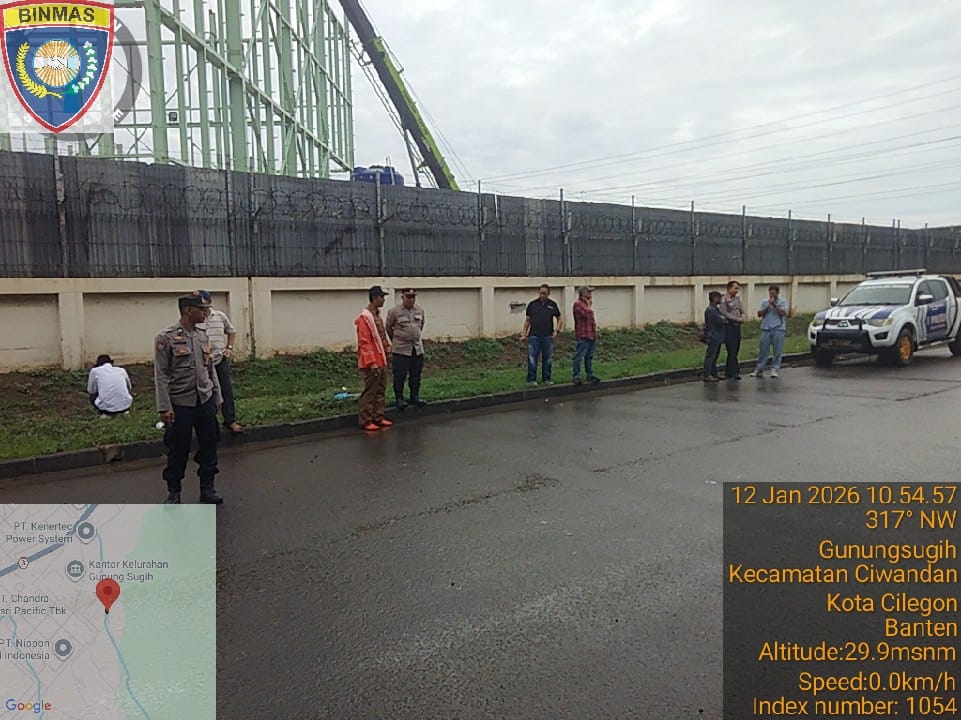 Cilegon - Personil Polsek Ciwandan Polres Cilegon Polda Banten melakukan pengawasan pembongkaran bangunan liar di atas tandon di Jl. Sunan Kali Jaga, Kelurahan Gunung Sugih, Kecamatan Ciwandan, Kota Cilegon. Senin (12/01/2026).