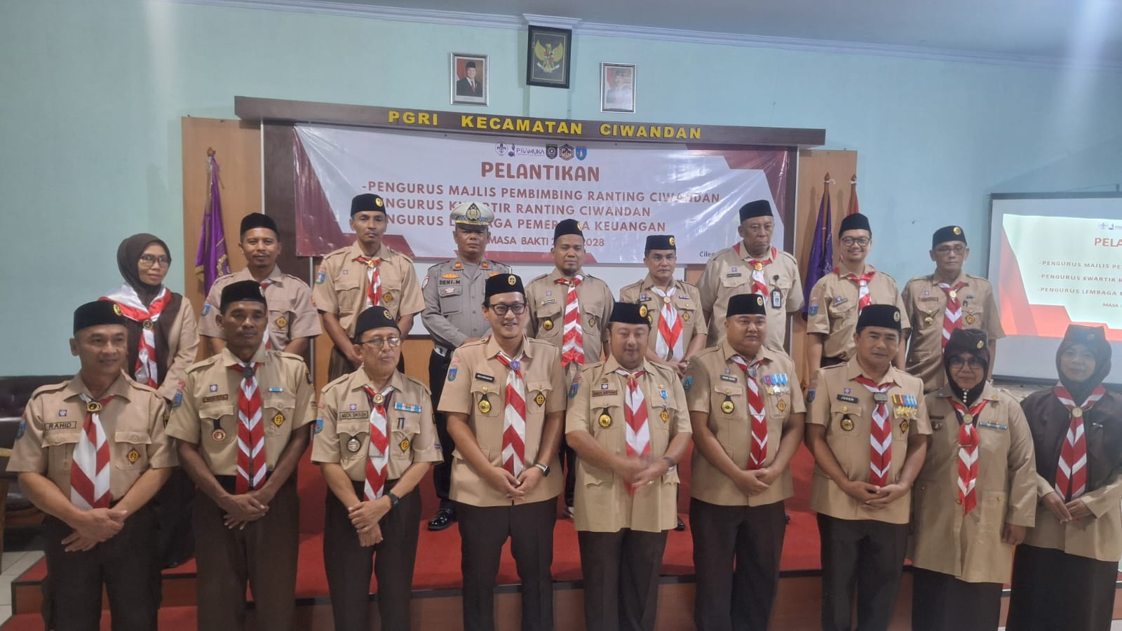 Cilegon - Polres Cilegon melalui Polsek Ciwandan menghadiri pelantikan pengurus Majlis Pembimbing Ranting Ciwandan, Pengurus Kwartir Ranting Ciwandan, dan Pengurus Lembaga Keuangan Masa Bakti 2025-2026 di Gedung PGRI Kecamatan Ciwandan. Senin (12/01/2026).