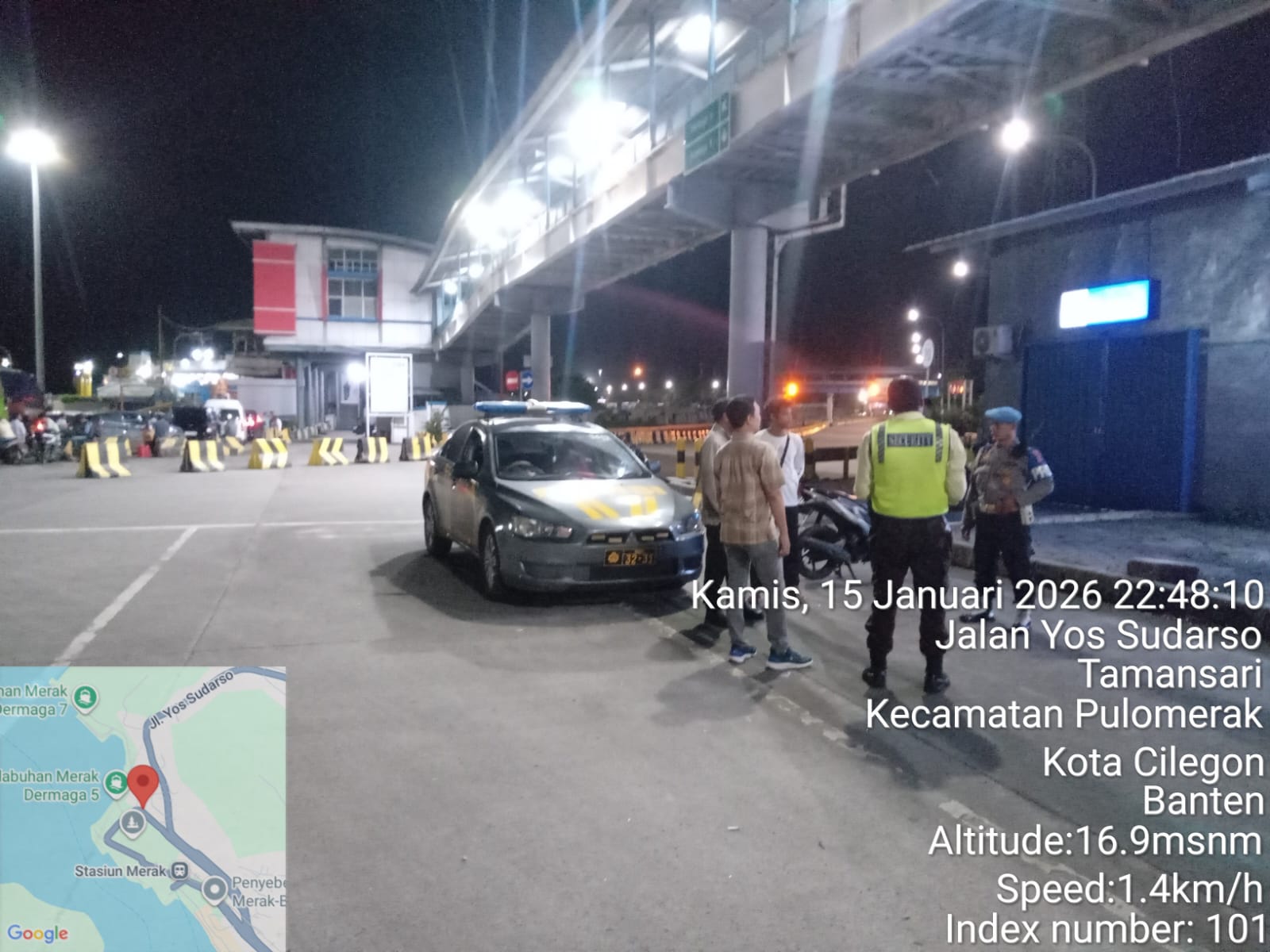 Cilegon - Personil Polsek Kskp Merak Polres Cilegon melaksanakan patroli di kawasan pelabuhan merak memberikan rasa aman dan damai, Jumat (16/01/2026)