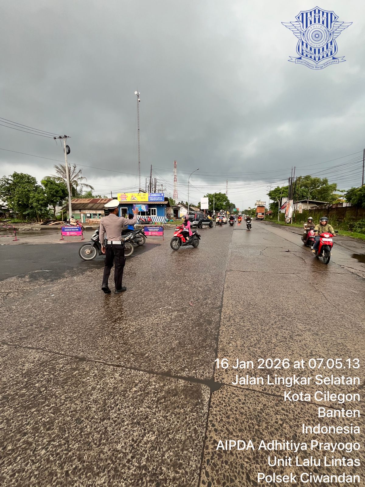 Cilegon - Unit Lantas Polsek Ciwandan menyediakan pelayanan lalu-lintas wisata untuk memastikan keamanan dan kelancaran arus lalu-lintas di wilayah Ciwandan. Pelayanan ini bertujuan untuk memberikan rasa aman dan nyaman bagi wisatawan yang berkunjung ke Cilegon, Jum'at (16/01/2026).