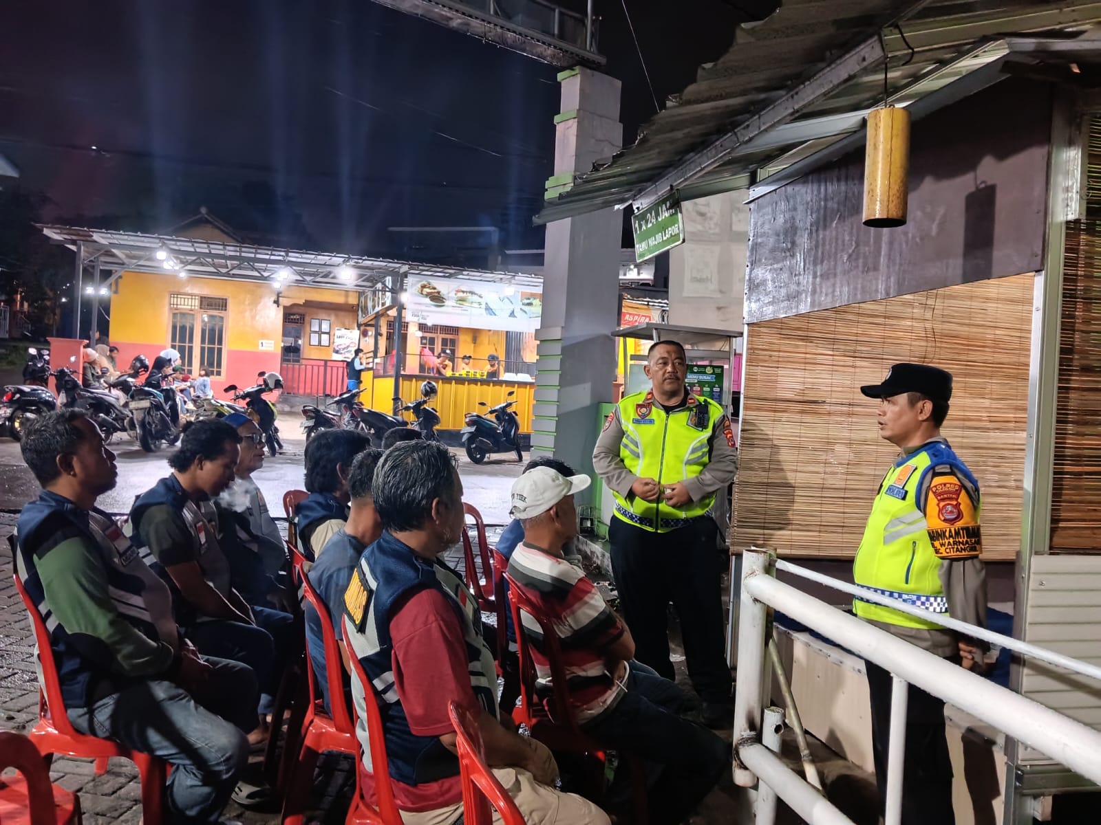 Tanpa mengenal waktu siang atau malam, IPTU Muhyidin memberikan pengarahan tegas sekaligus motivasi kepada warga, tokoh masyarakat, serta pengurus RT dan RW yang aktif menjaga keamanan lingkungan.