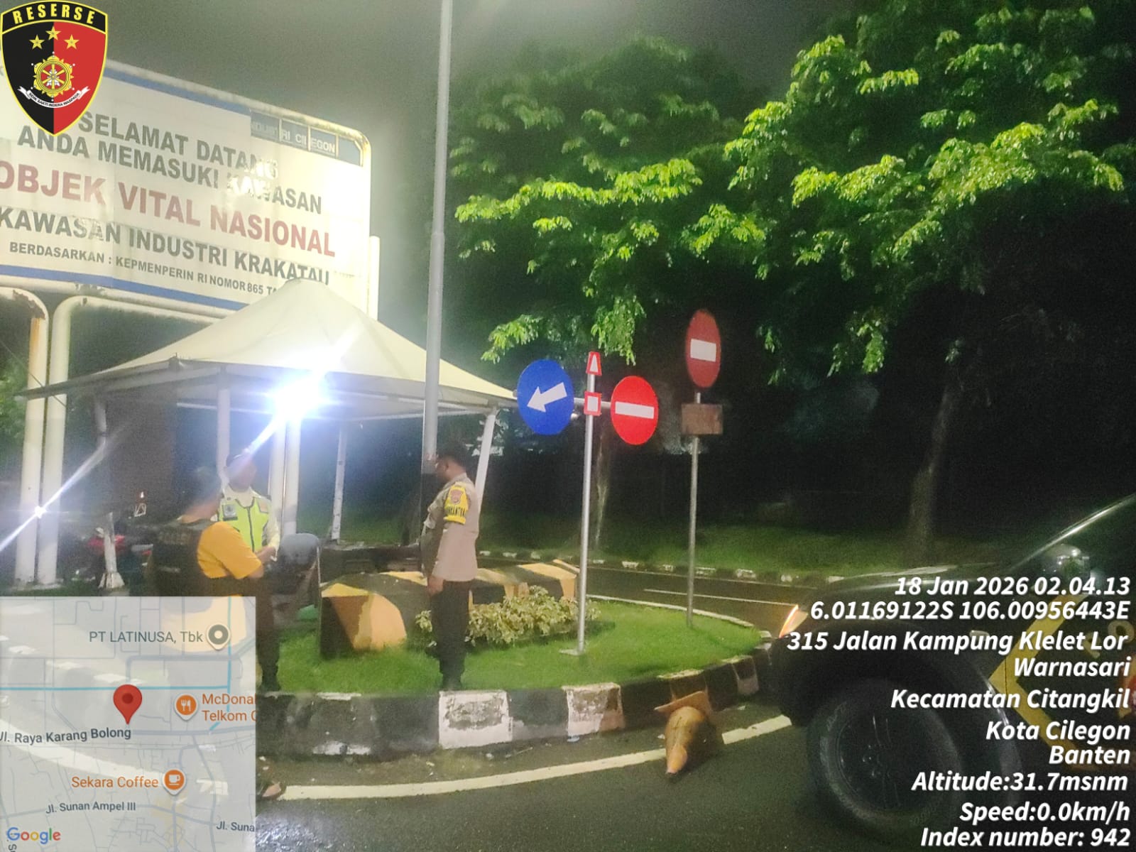 Kapolres Cilegon Polda Banten AKBP Dr. Martua Raja Taripar Laut Silitonga Melalui Kapolsek Ciwandan Polres Cilegon Polda Banten KOMPOL Andi Suherman Mengatakan Pada kesempatan tersebut, Personil Polsek Ciwandan melaksanakan sambang Dan Patroli dialogis dengan memberikan imbauan kepada petugas security perusahaan agar meningkatkan kewaspadaan terhadap situasi di sekitar perusahaan.