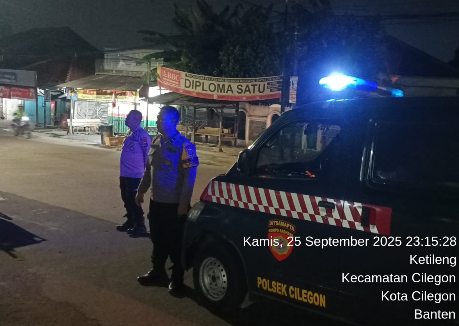 Anggota Polsek Cilegon laksanakan giat Blue light patrol antisipasi kejahatan malam hari jaga kondusifitas di wilayah