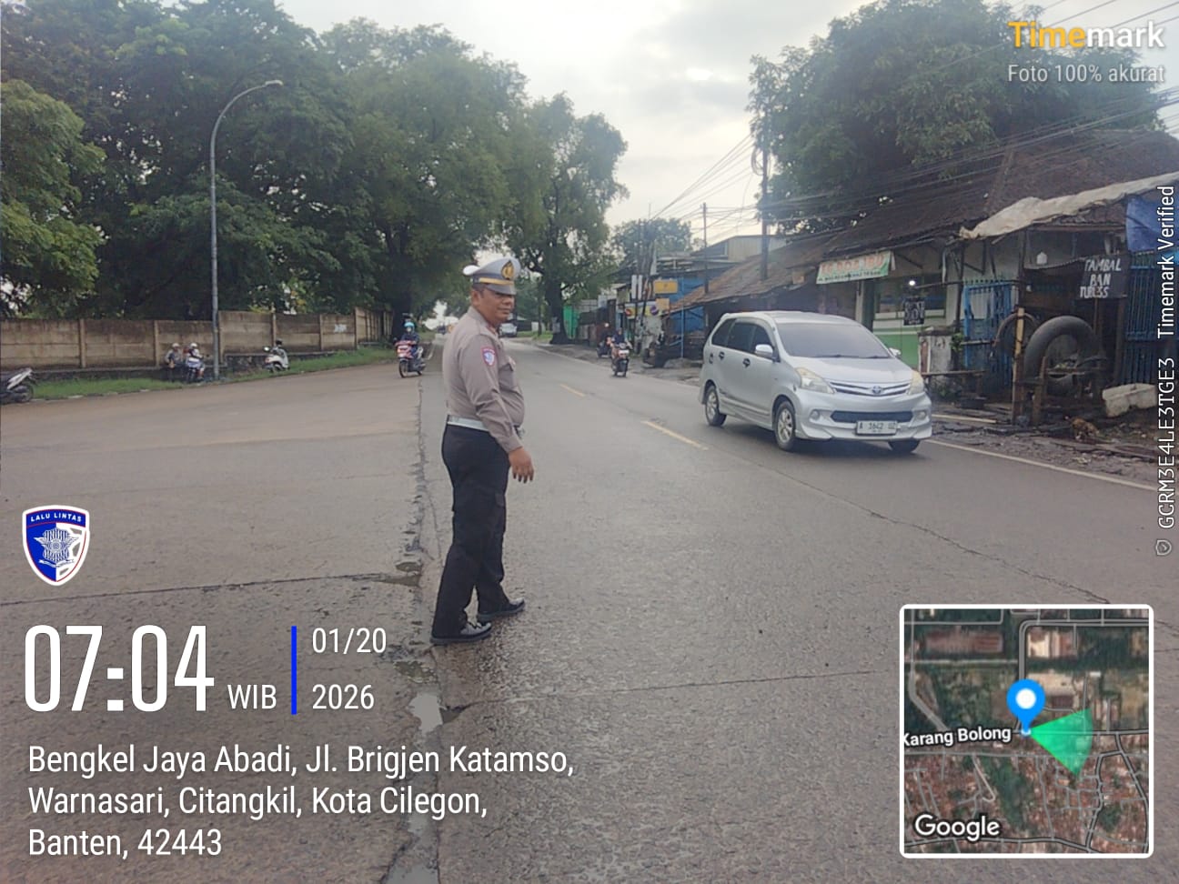 Cilegon - Dalam Mewujudkan Aksi Nyata Pelayanan Kepada Masyarakat,Personil Polsek Ciwandan Polres Cilegon Polda Banten Laksanakan Strong Poin Pengaturan Lalu-lintas,Selasa  (20/01/2026).