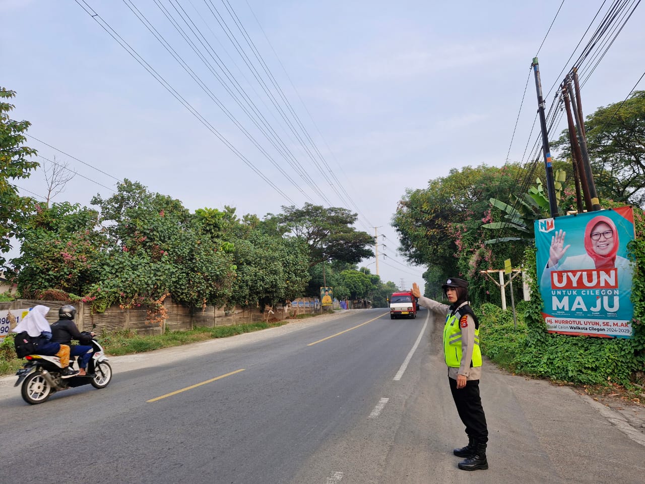 Polres Cilegon, Aipda Emi Prasetyo melaksanakan kegiatan pengaturan arus lalu