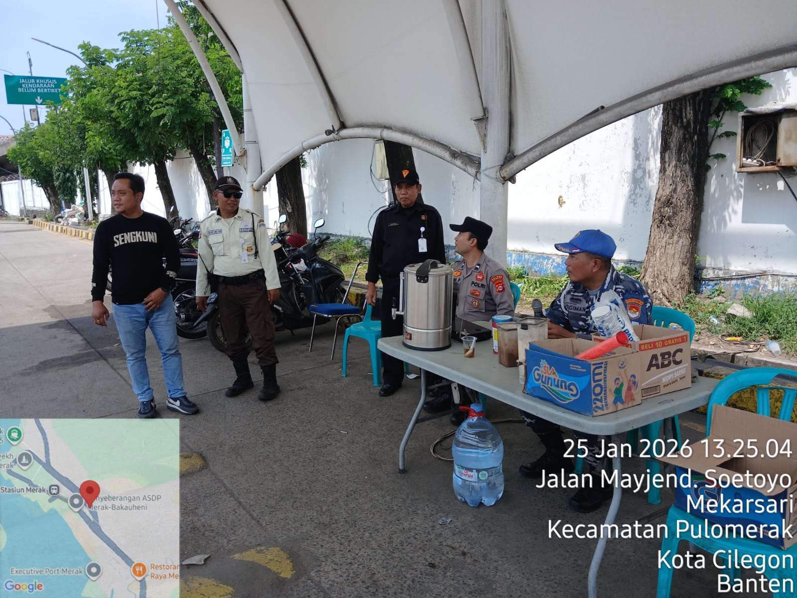 Cilegon – Polres Cilegon Polda Banten, Personil Polsek KSKP Merak Polres Cilegon Bersama Security dan stakeholder terkait wilayah Pelabuhan melaksanakan patroli di kawasan pelabuhan merak memberikan rasa aman dan damai, Minggu (25/01/2026).
