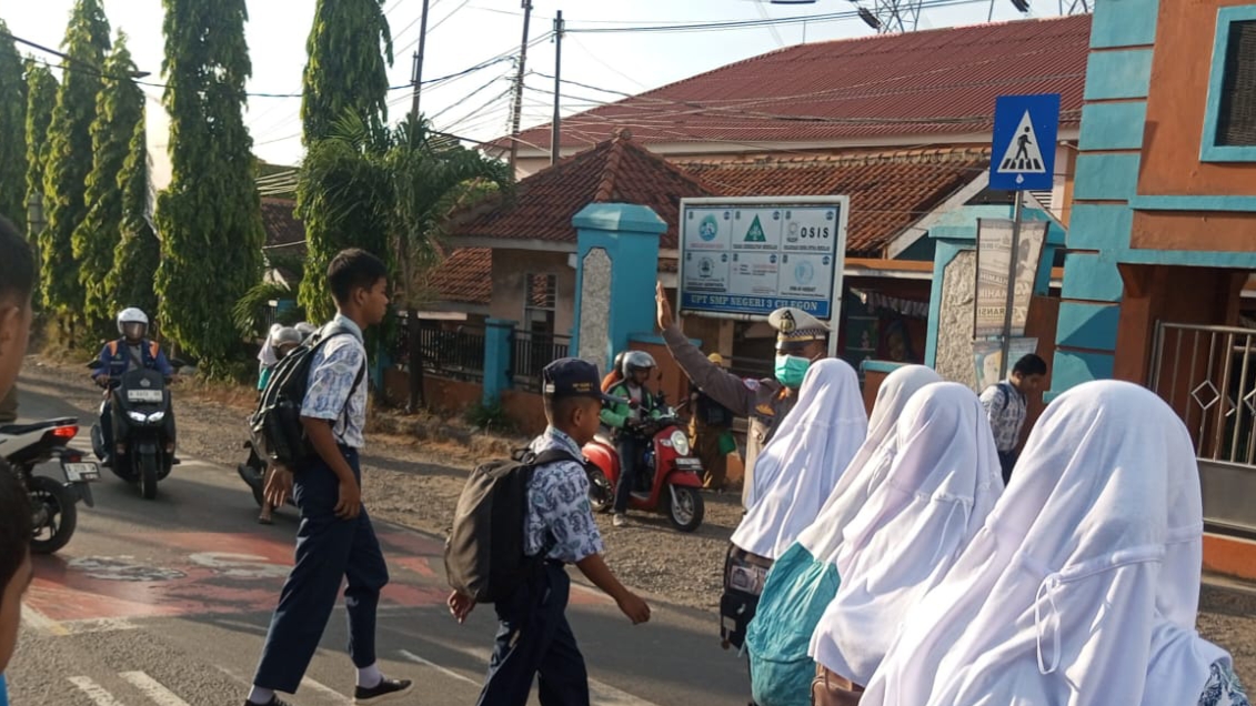 Giat Polsek Pulomerak laksanakan pengaturan lalin di depan SMP 3 Cilegon