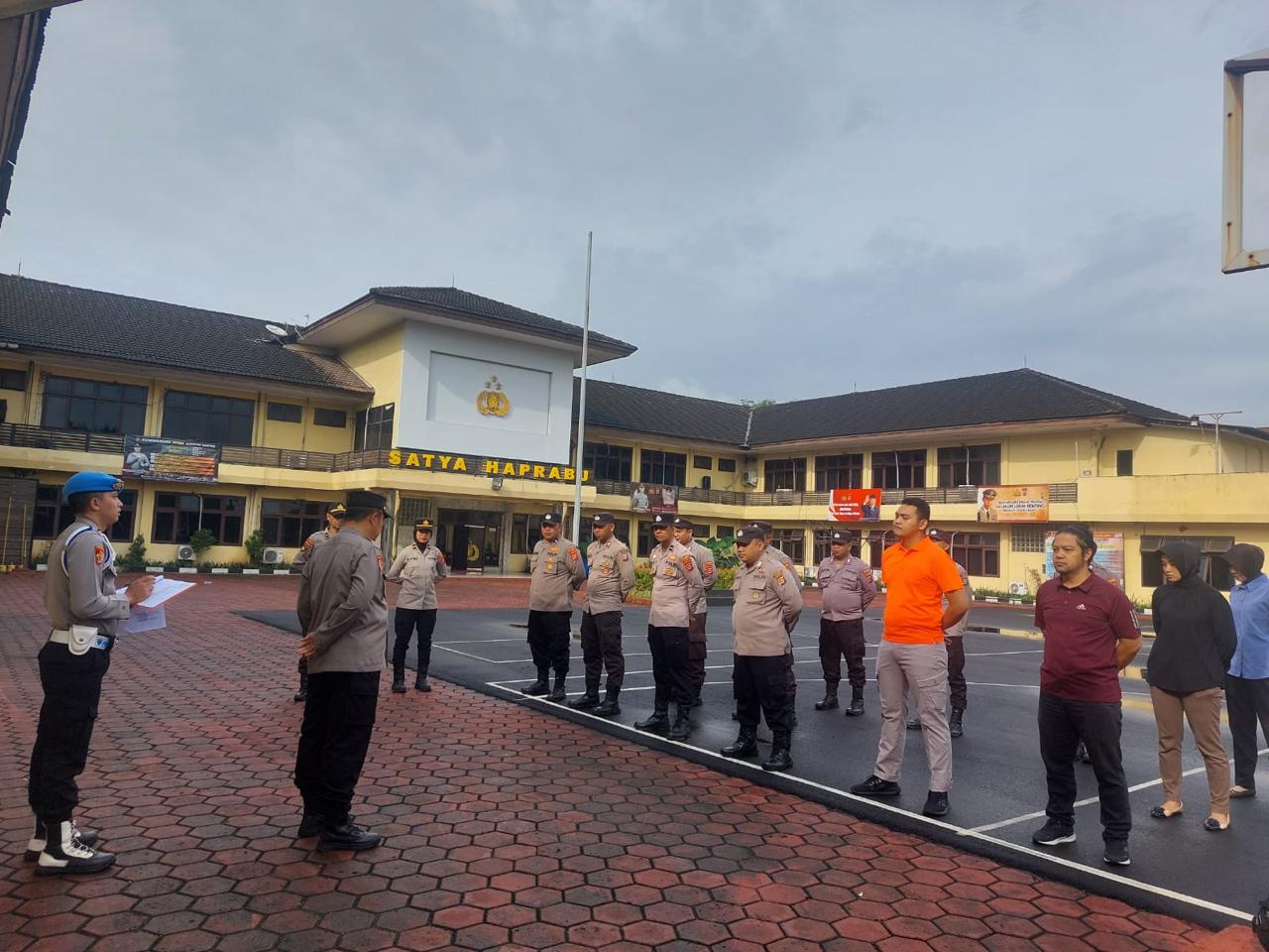 Anggota sium Polres Cilegon , tapil dalam Pellaksanaan rangka, kegiatan Apel ton Kerangka. Cilegon - Polres Cilegon Polda Banten - sium Polres Cilegon melaksanakan Apel Kerangka di Lapangan Apel Satya Haprabu Polres Cilegon Guna menunjukan kesiap siagaan pelayanan kepada masyarakat, sabtu (1/2/2026) Pukul 08.00 Wib. Kabag SDM Polres Cilegon selalu mengingatkan “Apel kerangka Penting untuk di laksanakan sebagai bentuk ke siap siagaan kita untuk hadir di tengah tengah masyarakat untuk melayani masyarakat sebagai mana tugas pokok Anggota Polri agar tericiptanya Harkamtibnas khususnya di Wilayah Kota Cilegon."Ujarnya Kegiatan ini sudah termasuk rutinatas personel Polres Cilegon menyadari kerawanan kejadian di akhir pekan kami selalu memberikan himbauan ke pada masyarakat untuk selalu hati hati dan waspada dalam menjalankan aktivitas di akhir pekan. Selain dari pada itu anggota yang terlibat apel tersebut melakukan pengaman di tempat ibadah guna kelancara dan ke amanan acara ibadah tersebut."Tutupnya (BL)