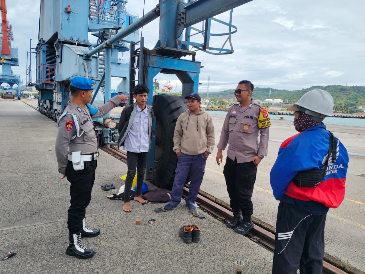 Jalin Silaturahmi, Bhabinkamtibmas Polsek KSKP Banten Berbincang dengan Buruh Sekitar Pelabuhan