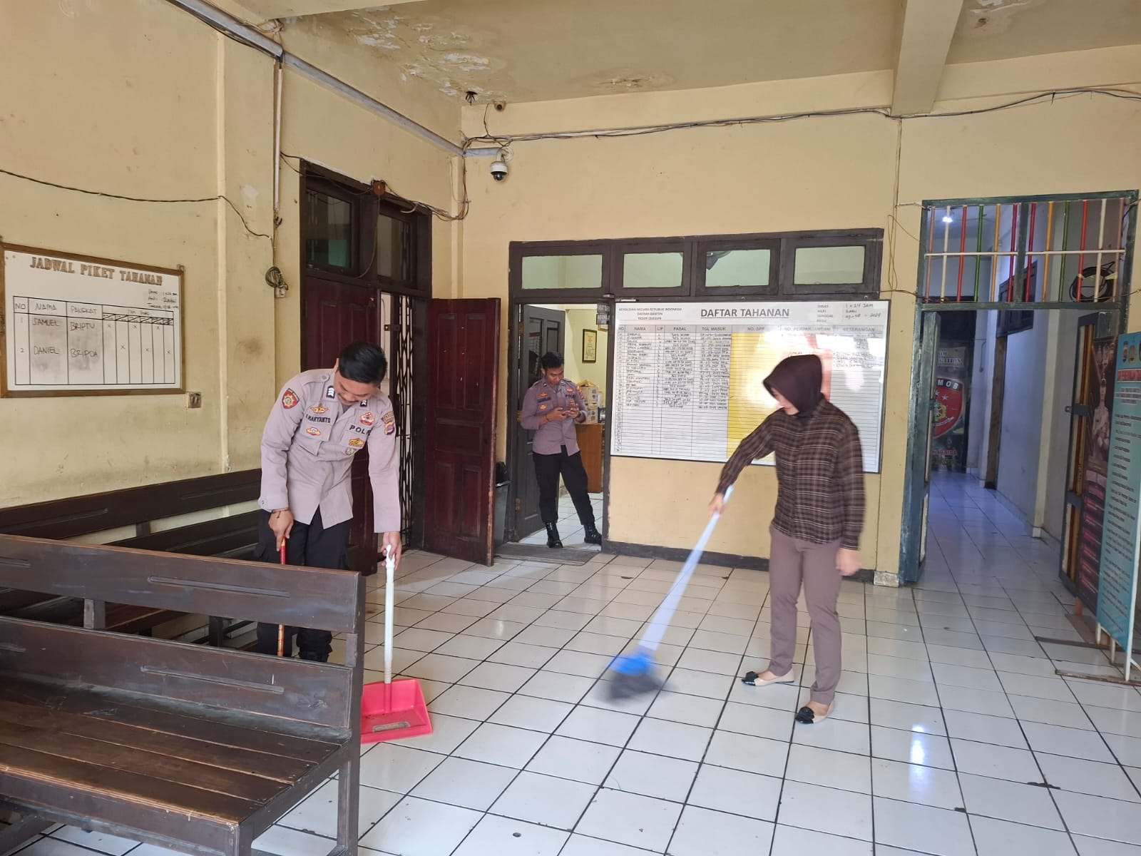 Kegiatan kebersihan  tahanan ini adalah salah satu bentuk  tugas dan tanggung jawab setiap personil anggota sattahti dalam menjaga dan merawat tahanan yang ada dirutan polres cilegon.