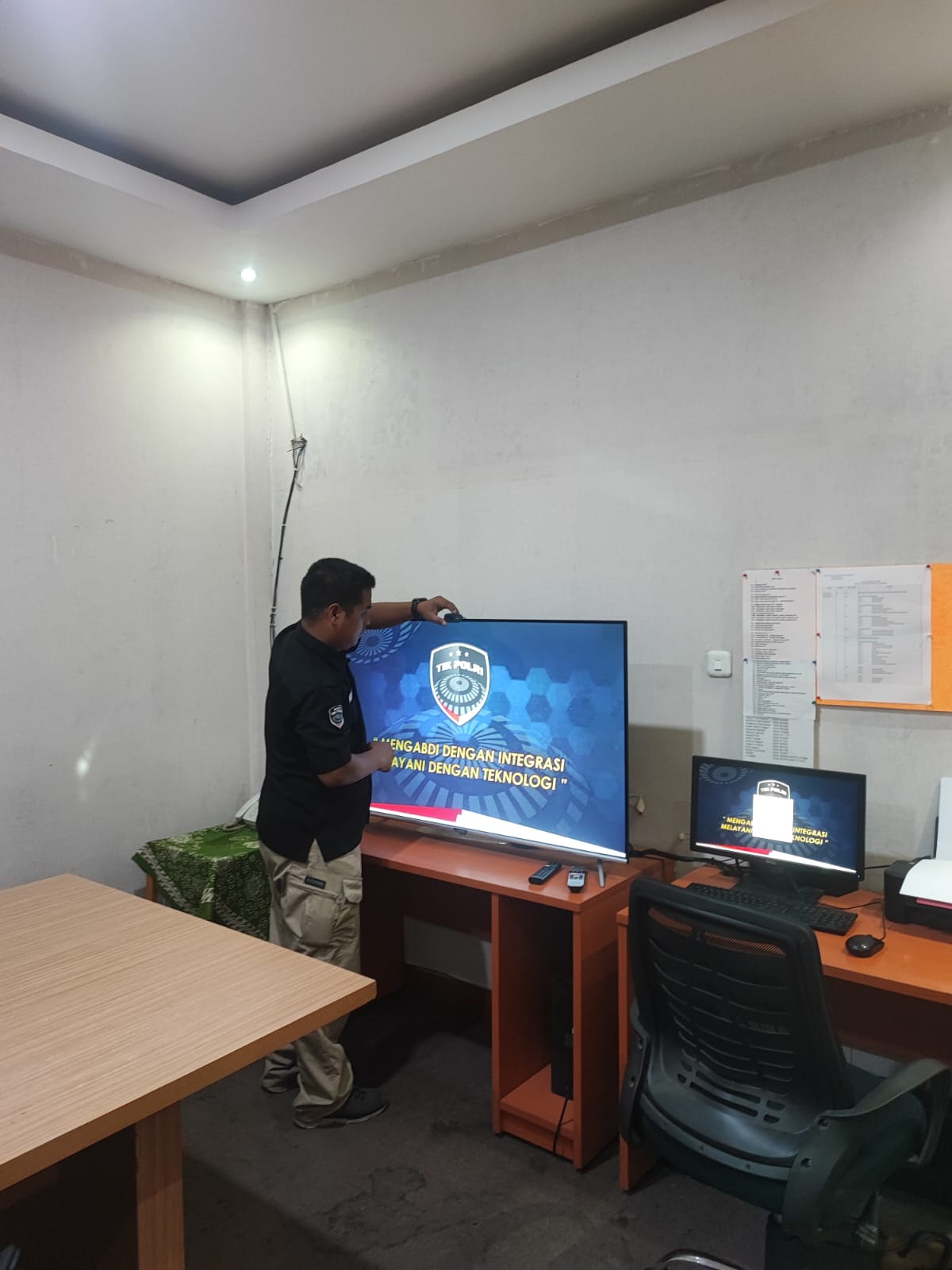 Anggota Tik Polres Cilegon Menyiapkan Sarana dan Prasarana Untuk Kegiatan Zoom meeting Dalam pelaksanaan kegiatan zoom meeting tersebut anggota TIK Polres Cilegon yang bertanggung jawab untuk menyiapkan peralatan zoom. Selain itu agar di tidak ada gangguan jaringan sebelum pelaksanaan anggota TIK melakukan pemeriksaan terhadap sarana dan prasarana tersebut . Satu jam sebelum kegiatan zoom meeting itu dimulai. Kapolres Cilegon AKBP. DR. MARTUA RAJA TARIPAR LAUT SILITONGA. melalui Kasi TIK IPTU Jajang Rohendi menyampaikan bahwa “untuk menunjang kelancaran penyampaian informasi anggota TIk Polres Cilegon selalu memeriksa sarana dan prasarana tersebut, sebelum maupun pada saat pelaksanaan akan selalu di monitor”