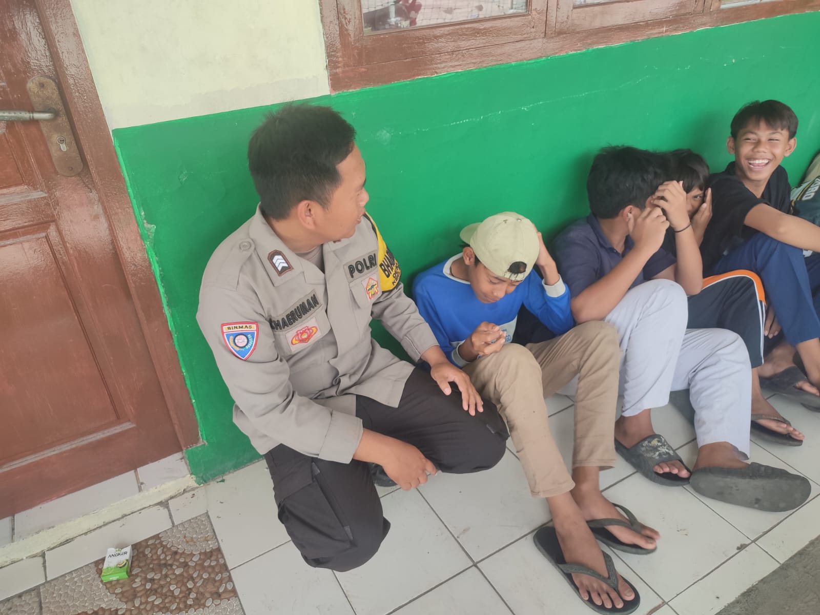 Sambang Siang Hari, Bripka Leo & Brigadir Chaeruman Polsek Bojonegara Sambang & Silaturahmi dengan Remaja Sosialisasi Call Center 110