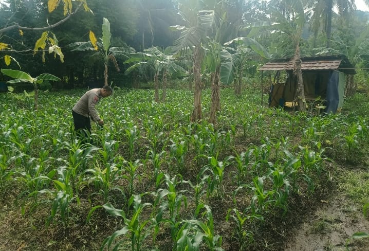 Kegiatan ini bertujuan untuk memastikan kondisi tanaman jagung tetap optimal serta memberikan dukungan kepada petani dalam mengelola lahan pertanian. Selain memeriksa pertumbuhan tanaman, Aipda Anton juga berkomunikasi langsung dengan para petani untuk mendengar keluhan dan memberikan informasi terkait upaya pencegahan gangguan serta keamanan di wilayah sekitar lahan pertanian.