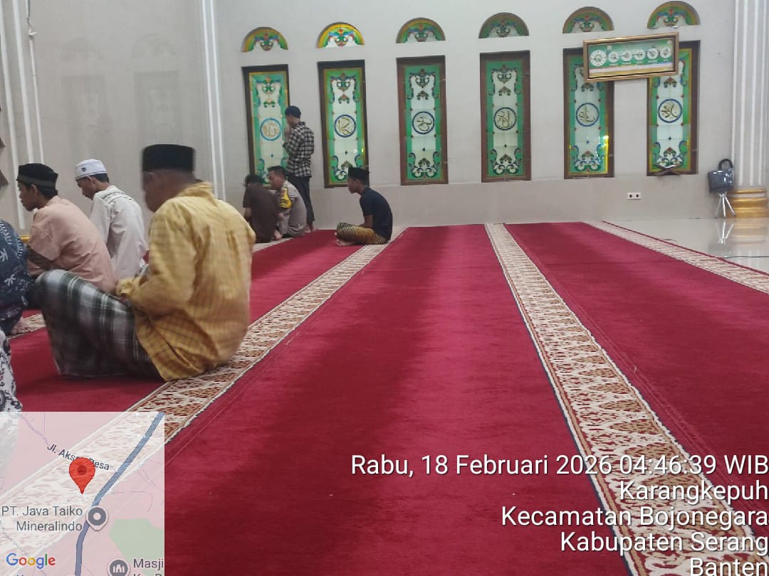 Cilegon – Polres Cilegon Polda Banten, Personil Polsek Bojonegara Polres Cilegon menggelar kegiatan Pembinaan Rohani dengan shalat subuh keliling di Masjid Raya Nurul Iman Kp. Banjar Ds. Karangkepuh, Kec. Bojonegara Kab. Serang, Rabu (18/02/2026).